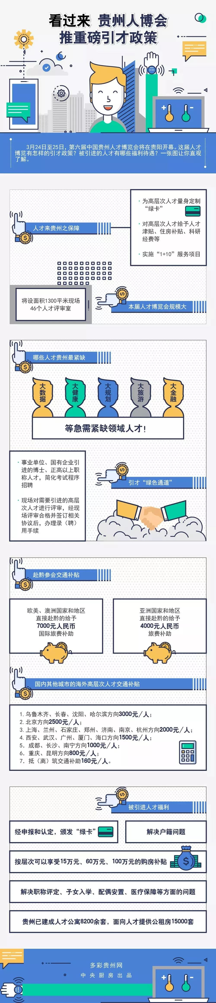 从获批建设遵义综保区、贵阳临空经济示范区,安顺高新区升格为国家级,到获批建设国家大数据综合试验区、生态文明试验区、内陆开放型经济试验区,贵州蕴藏着大量的创新创业机会。实施“双千工程”、“双培育”行动计划、“5个100工程”,大数据、大健康、大旅游产业发展风生水起,这些都成为吸引高层次人才的重要因素。6