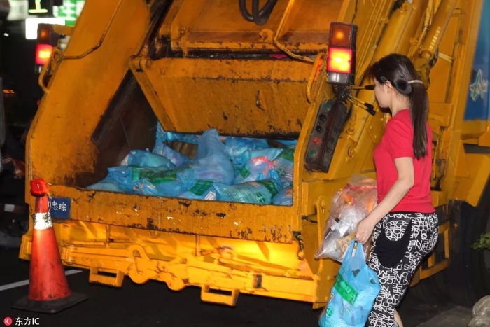 台湾的垃圾处理都由垃圾车每日在固定时间回收。视觉中国图