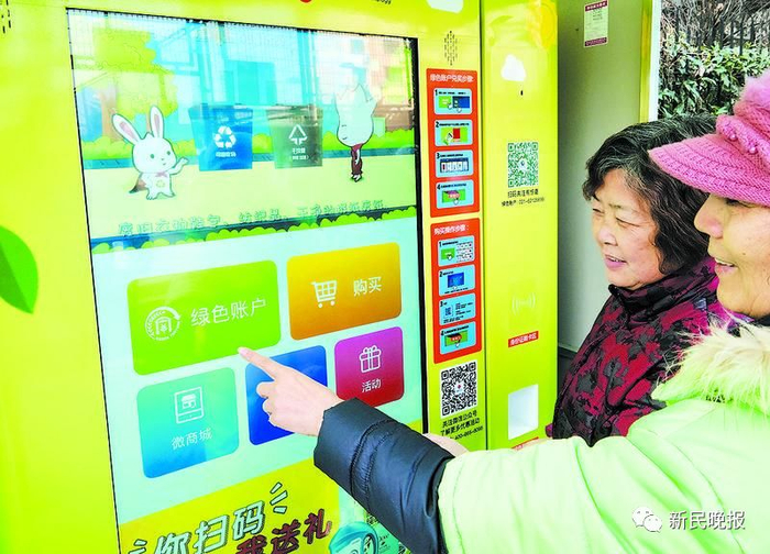 “绿色账户积分兑换机”前,上海居民用积分兑换礼品。新民晚报图