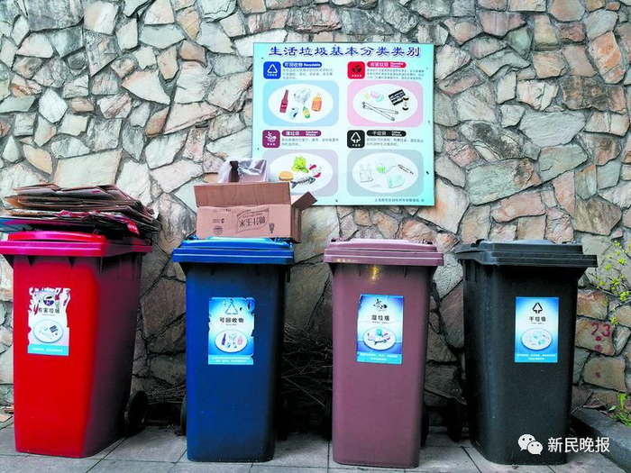 许多小区都设置了分类投放垃圾桶,但居民分类投放意识仍需提高。新民晚报图