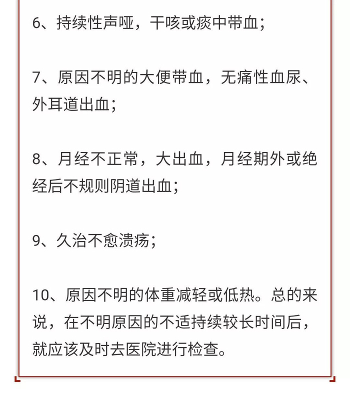 第十名:身体异常信号不重视