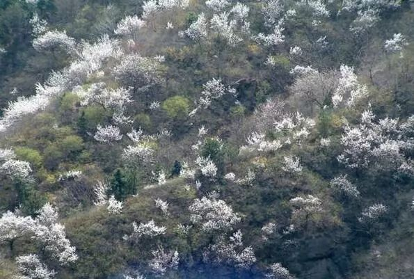 每到三四月间,谷里百花盛开。“清明”节前后最先开放的是杏花,峡谷里、山坡上漫山遍野,昂首怒放。接着便是火红的桃花,让这里的风景更加娇艳。
