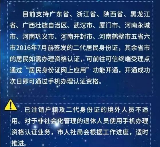 办理认证别忘带重要材料 本人携带身份证、《社会化管理服务手册》、《退休证》(其中之一即可)办理;居住在托养机构或外地的,可另外提供托养机构或居住地村(居)委会出具的证明予以代办;个别居住在境外人员的认证工作请致电咨询。来源:信息时报记者 黄艳