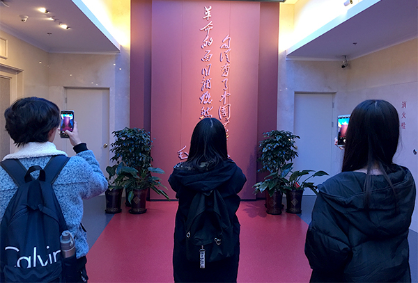 上海师范大学大一的学生们时不时地用手机拍摄展览内容。