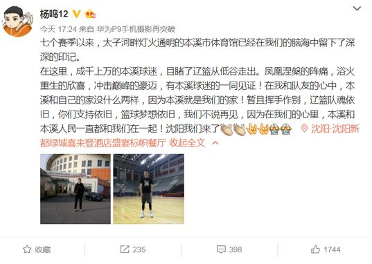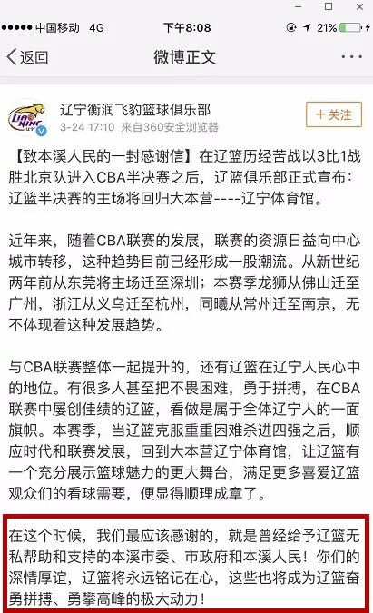 辽篮俱乐部在微博上郑重宣告!
