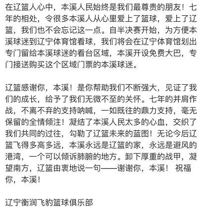 辽篮俱乐部也在公告中说了,