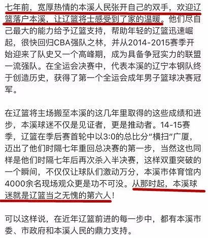 本溪表达了承接辽篮主场赛事的热情。