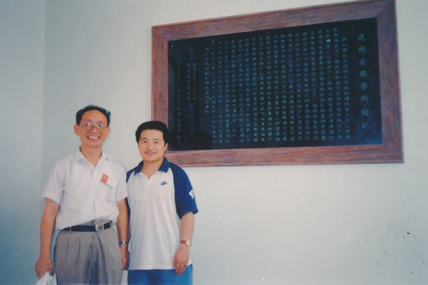 陈允吉与敦煌研究院梅林老师合摄于潮州饶宗颐学术馆,身后碑刻为朱维铮先生所撰之《建饶宗颐学术馆记》。
