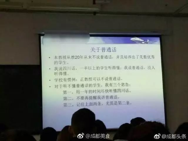 一位四川老师:“不要让我讲普通话,让我讲普通话就是在挑衅我,我一般不挂学生科,除非你挑衅我”……(据@成都头条)