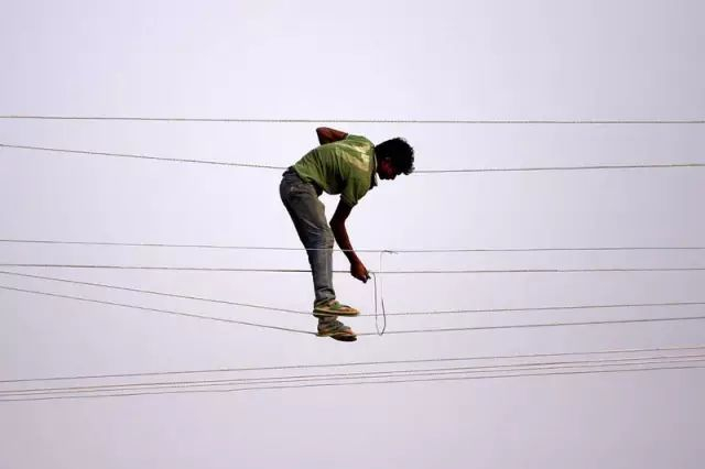 看一眼印度街头的电线,就知道印度的电工多么不容易。不知需要何等的勇气和耐心才能胜任这份工作?