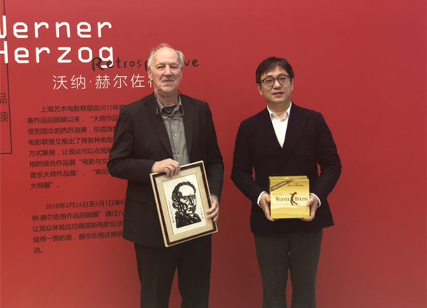 赫尔佐格表示非常荣幸能够在上海举办电影回顾展,让中国的观众看到自己的电影,此前他曾受邀参加3月20日第42届香港国际电影节,与香港影迷分享自己的创作灵感和构思。他认为,中国将在不久的未来成为世界最大的电影制作市场,中国电影文化丰富而又活跃,在这里能够感受到不同文化的脉动以及随之而来的冲击,上海无与伦比的文化气息也深深感染着他,相信上海会成为他电影梦和人生梦的一部分。在交流过程中,他提到世界上有三种东西不需要说话就可以理解——音乐、数学和电影,是电影将我们联系在一起,虽然电影有不同的形式,“但是电影是我们共同的梦想,通过电影将不同视角的世界分享给彼此。”