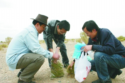 钟扬(左一)在可可西里采集植物。复旦大学供图
