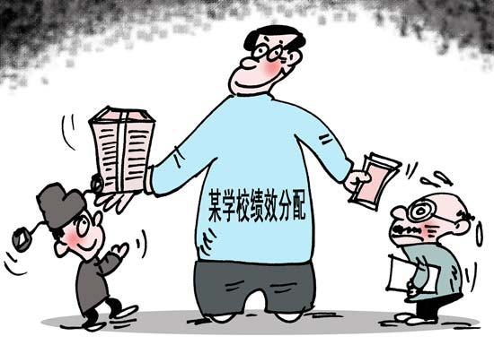 绩效分配上还有之前许多人说过的公平问题,比如,管理岗和后勤岗提取比例不合适。有些地方是在让这些岗位上的人员全部享受平均值的基础上再享受管理岗位津贴,或者是将他们教的课时全部按超课时、超工作量对待。这是错误的,是将这些管理后勤人员当作了人上人。因而出现了一线教学人员绩效工资数额普遍不如教辅人员,更远远低于学校各级管理人员的绩效分配畸型现象。