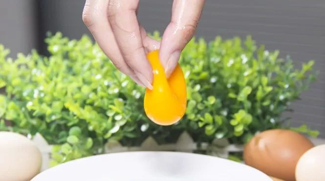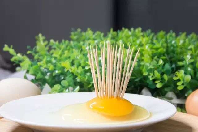 生蛋黄标准:聚合度高,可“站”多根牙签。通常可以使用竹制牙签对蛋黄做聚合度测试,来鉴别蛋黄的品质。牧养鸡日常活动量大,不喂外购饲料,自然状态下平均两三天才产一枚蛋,所以蛋黄聚合度更高,牙签插入后不易翻倒。