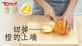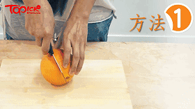 方法二:切掉橙子的上下两端,然后在橙子侧面直切一刀,沿开口剥下即可。