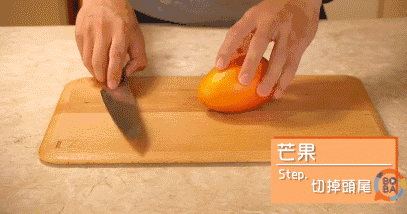 方法一:切掉芒果的首尾部分,再照着芒果核所在的位置从中间对半切开。