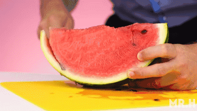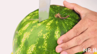 沿着瓜皮的方向将皮肉分离,并竖着切成无数小块的西瓜,人多的时候吃起来特别方便!