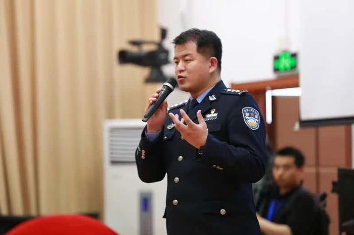 “这个警察叔叔是‘德云社’毕业的吧。”坐在记者后排的学生窃窃私语。