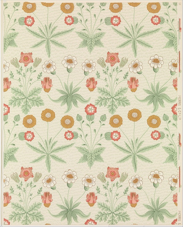 莫里斯的设计从自然中汲取灵感,以他在乡间漫步或在花园中观察时所见到的树叶、葡萄藤和花朵作为特色。和那些写生的绘画不同,他的画是风格化的。小雏菊(Daisy),一种以草场上的花朵为特色的简单设计,是莫里斯1864年第一次出售的墙纸设计品。