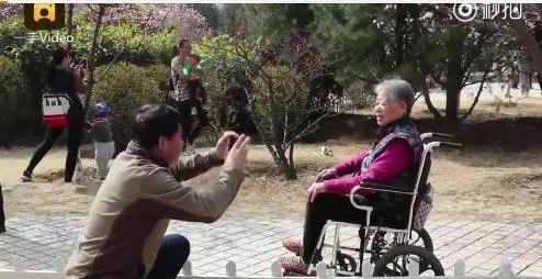 3、大叔推轮椅带8旬老母赏花:小时候她常带我出来