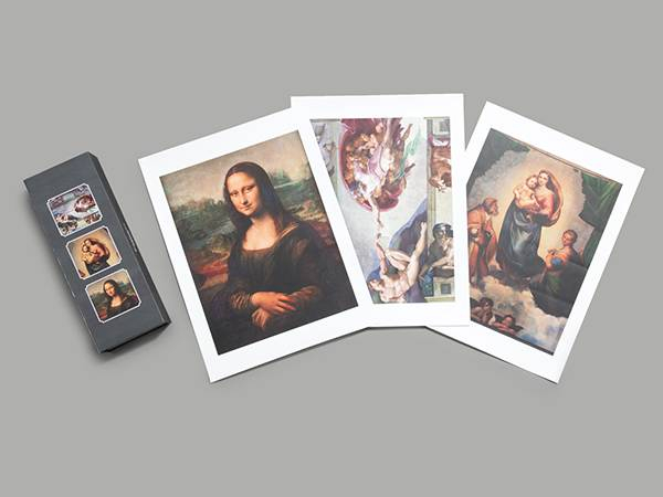 分别是达·芬奇的《蒙娜丽莎的微笑》、米开朗基罗的《上帝创造亚当》、拉斐尔的《西斯廷圣母》。再现原画风采,可作为室内装饰用。