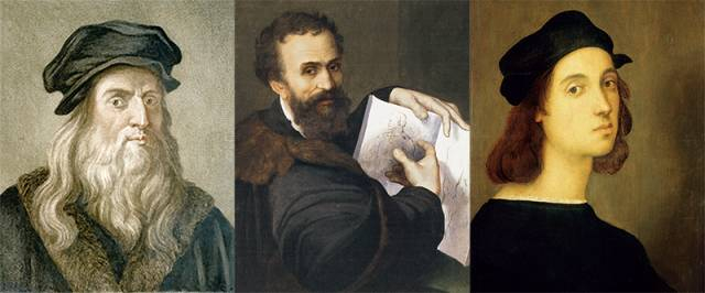 左起:达·芬奇、米开朗基罗、拉斐尔