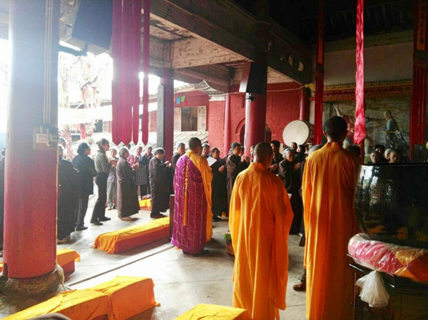 自娱自乐的也各得其乐,一位老奶奶摸出一本简陋的民歌谱子,旁边围着几个热心听众。外村过来的一位居士没找到同伴,很有先见之明地拿出毛线开始织毛衣。周围热热闹闹的,比世俗中的宴席还自在。