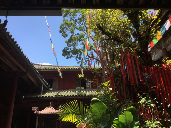 后来我专门去城里的寺庙,那里的念佛团每月两天念佛诵经。中午在各殿及长廊处有老居士们安静读经,或两三人指着经书讨论。腾冲正午日头灼热,阴凉处却仍凉风徐徐,令人有夏日迟迟之感。
