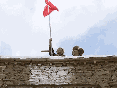 动图为姐妹俩在更换国旗