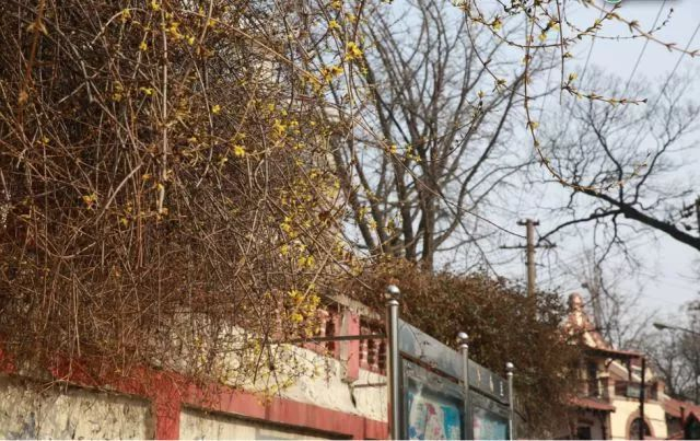 市南区福山路支路5号,康有为故居附近的乱连翘已经开放。