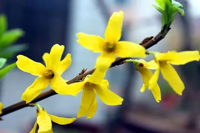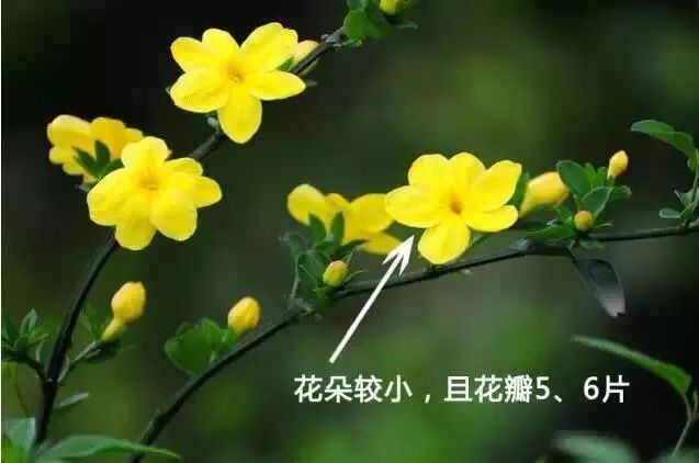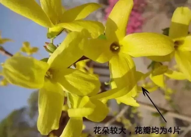 二、看花瓣✔连翘:数目4片,花金黄色,花瓣较迎春花要宽大一点,花瓣为四瓣