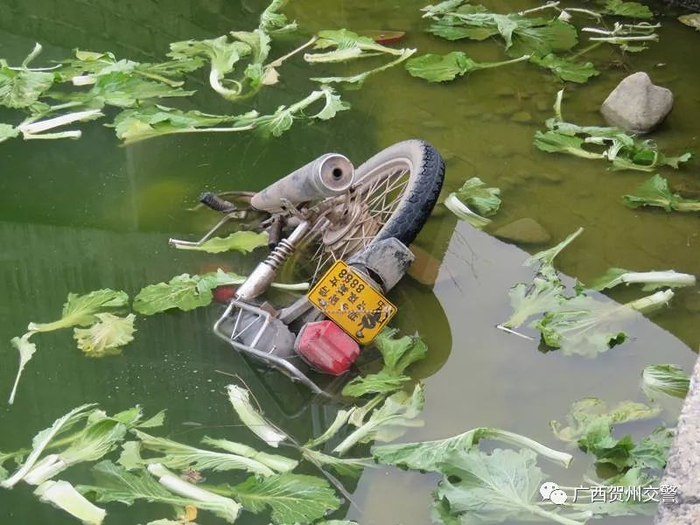 桂岭初中生开摩托车冲进鱼塘!