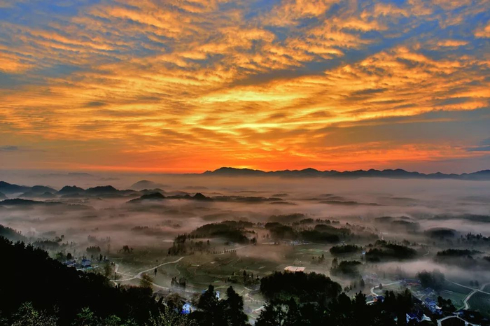 云山茶海也是开阳“十里画廊”的一个重要景点。青山秀水间常年云雾缭绕,仿若人间仙境。