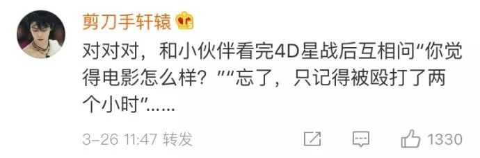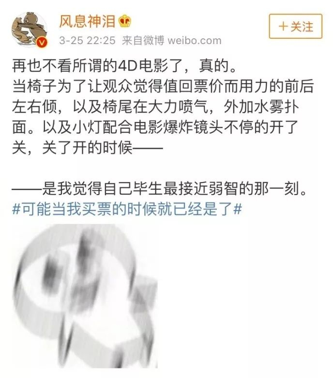 有网友表示,再也不看所谓的4D电影了……