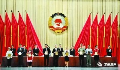 于海(前右三)在全国政协会议期间提交的有关国歌立法的提案获优秀提案。