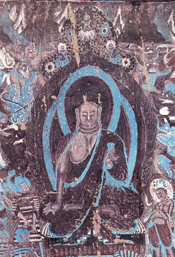 这本关于敦煌的新书为什么专门介绍254窟?因为这座石窟是敦煌最有代表性的洞窟之一。在史苇湘撰写《敦煌学大辞典》对这座石窟有这样的诠释:“建于北魏统一河西后……此窟建筑布局谨严,雕塑壁画都没承袭北凉风格而有所发展,是莫高窟早期艺术较为成熟的代表。……塑像比例合度,袈裟贴体,坐立诸像,腿部修长,头部广额丰颌,神态庄重。四幅主题画是北魏壁画的精品。在中国美术史上有重要价值和意义,无论题材处理,人物造型,色彩线描,无不显示出以传统为主、吸收外来文化的融合创新精神。……此窟壁画、塑像、建筑虽经多次烟熏火燎,历尽劫难,但艺术魅力至今犹存。工力深厚、用笔潇洒的千佛题记,也是北魏墨书在莫高窟内保存得最好的一部分。”由于年代久远、保存完整、艺术价值珍贵,这座洞窟很少有机会对公众开放。