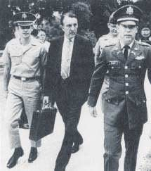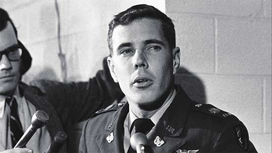 被控对惨案负责的凯利少尉(右)接受审查