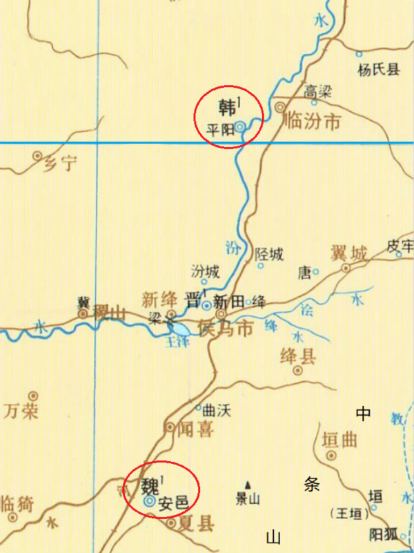演义版故事的作者还不明地理。平阳在汾水旁,离绛水甚远,安邑与汾水、绛水则均不相邻。