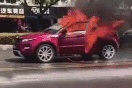 导致红色路虎瞬间起火!