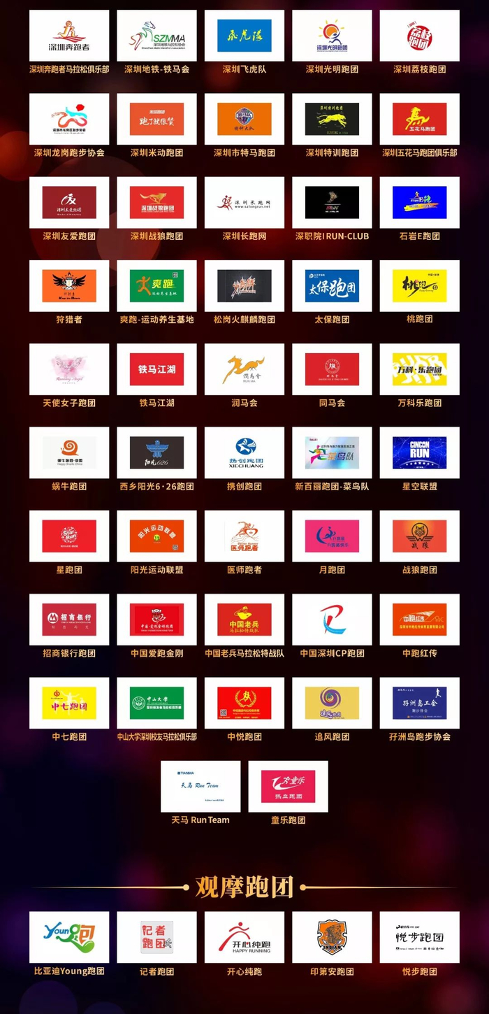 中悦跑团、观澜马拉松协会