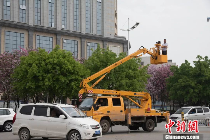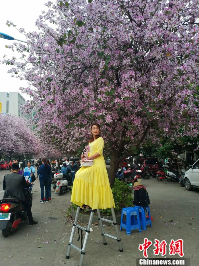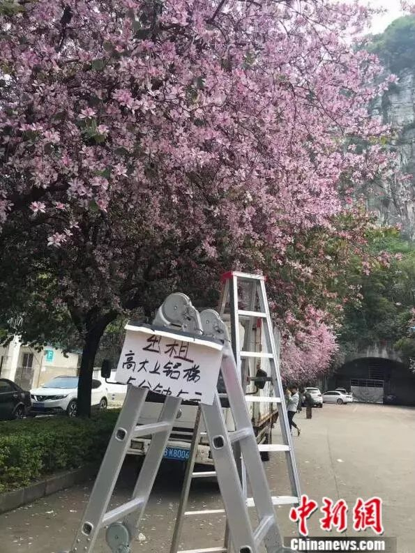 这些都不算啥,柳州人为了拍紫荆花,还练就了“上天”的本领!这种拍摄道具真的高攀不起↓