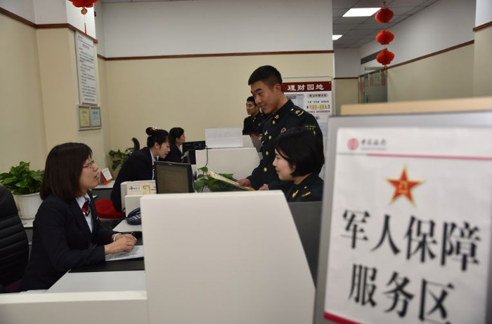 中国银行:本着“真诚服务、军民融合”的宗旨,努力为军队广大官兵提供“专业、便捷、优质”的金融服务。免收军人保障卡持卡人年费、小额账户管理费,开卡、补换卡手续费,免除持卡人本行异地交易手续费,免除军人保障卡发生在国内所有商业银行ATM交易手续费。国内所有中国银行网点开通“军人优先”服务,方便官兵办理业务。为军队官兵提供优质金融服务,主要包括本、外币、定、活期储蓄类产品;住房贷款、汽车贷款、国家助学贷款、外汇留学贷款、个人投资经营贷款等贷款类产品;结售汇、汇款、外币兑换等汇兑类产品;外汇、黄金、基金、理财产品、第三方存管、保险等投资理财类产品以及借记卡、信用卡等银行卡类产品。为有存、取款需求的部队安装自助存取款机,使官兵及家属享有便捷的存、取款和转账环境。在网点开通“军人优先”绿色通道,为广大官兵提供更高效的金融服务;推出更多面向官兵的“专属理财产品”,具有收益优、安全性好、购买渠道广、方便快捷等特点。该行拥有网上银行、手机银行及电话银行等在内的强大电子银行服务渠道,可为广大官兵提供账户管理、账单缴付、转账汇款、投资理财等各类服务。