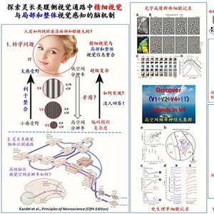 灵长类视觉系统通常被描述为一个从视网膜出发,由各个不同等级的视觉脑区组成的神经环路系统。初级和次级视皮层(V1和V2)神经元具有较小的时空整合感受野,偏好局部视觉信息,而从较高级视觉脑区V4和MT/MST开始,神经元普遍具有较大的感受野,适合整合较大视野内的视觉信息,从而完成整体视觉感知和认知功能。已有的教科书式的知识认为,在灵长类等级化的视觉系统中,伴随着神经元感受野的逐级增大,各个视觉脑区的最优空间分辨率逐级下降。那么精细视觉如何传递到高级视皮层如IT区进行物体识别和认知?这是视觉科学研究中的重大基础科学问题,至今没人能够回答。