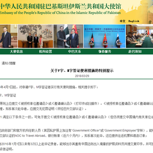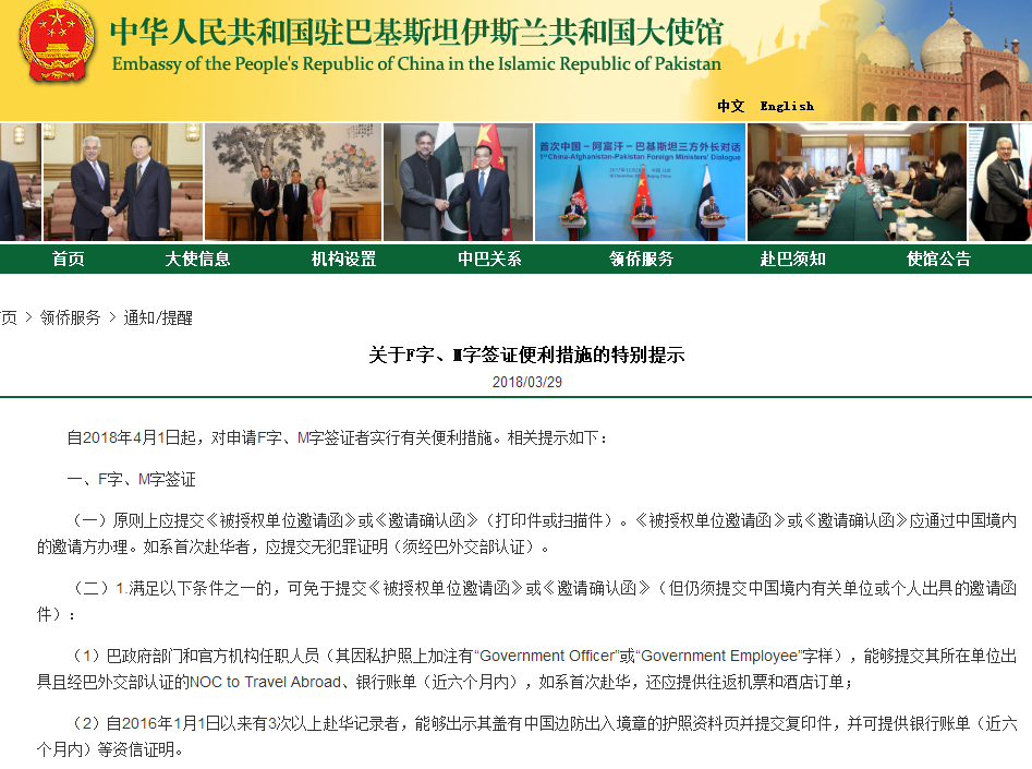 驻巴基斯坦中使馆发申请F字、M字签证特别提示