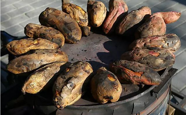 街边烤红薯是用燃烧的煤炭烘烤而成的,烘烤过程不仅受到燃烧煤炭中有毒物质的污染,而且烤后摆到炉上,又没有防尘卫生设施,再一次受到多种因素的污染。