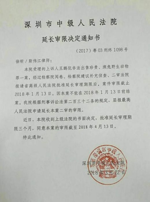 深圳市中级人民法院宣判,法院二审以王鹏非法收购、出售珍贵、濒危野生动物罪,判处其有期徒刑两年(在之前的一审判决中,王鹏被判处有期徒刑五年)。