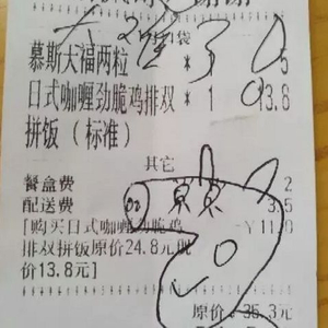叁角餐盒上的收据。图片由当事人提供