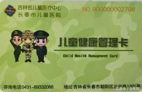 吉林省儿童医疗中心、长春市儿童医院为军人子女免费发放儿童健康管理卡,此卡可作为就诊卡使用,并纳入儿童健康管理系统,持卡享有0-6岁期间(3月,6月,9月,12月,1.5岁,2岁,2.5岁,3岁,3.5岁,4岁,5岁,6岁)12次免费体格检查、生长发育评估、口腔、眼、耳鼻喉、视力筛查等保健服务,并享受专业的喂养指导、发育指导、防病指导、预防伤害指导、口腔保健指导等。