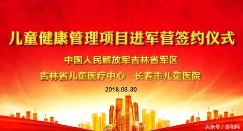 3月30日,儿童健康管理项目进军营签约仪式在吉林省军区举行。吉林省军区保障局局长田跃武、长春市儿童医院院长姜洪波签订了《儿童健康管理项目进军营合作协议》。