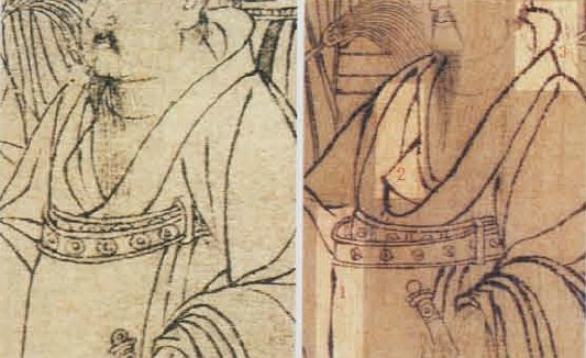 扶桑大帝线条比较图,左《八十七》,右《朝元》(李凇论文图)